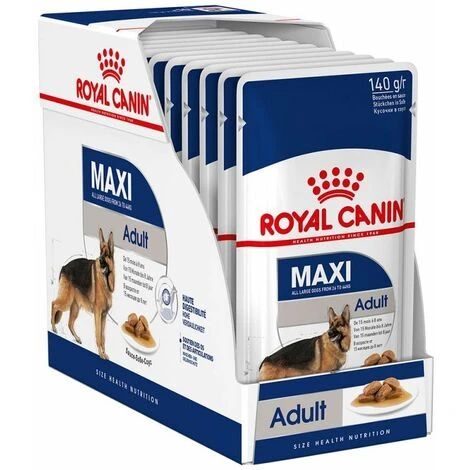 Les morceaux de viande maxi adultes Royal Canin š Salsa sont un excellent repas creux pour les chiens adultes de grandes races. Cette nourriture Hiro Royal Canin Adulte Maxi offre une digestibilit_ _lev_e qui favorise la sant_ digestive. Il favorise la soin des articulations et de la sant_ ost_oarticulaire et empche les blessures chez les gros chiens. Il fournit des acides gras om_ga-3: EPA-DHA pour aider š maintenir la sant_ de la peau. Boîte de 10 enveloppes de 140 gr.