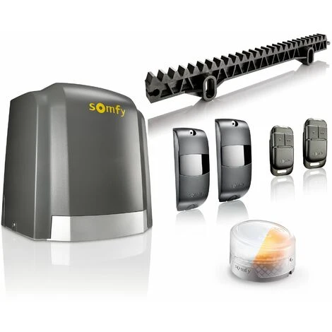 - Kit de motorisation pour portail coulissant incluant 1 moteur, 2 tĂ©lĂ©commandes 2 touches Keypop, 4 mĂštres de crĂ©maillĂšre de 20mm d’Ă©paisseur (12 tronçons de 33cm), 1 gabarit de perçage, 1 feu clignotant, et 1 jeu de cellules photoĂ©lectriques.